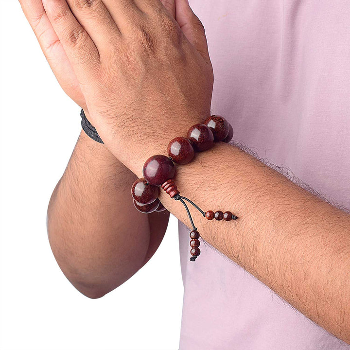 Shop Red Chandan Bracelet – 18mm 10 Natural Beads | Satvikworld.com