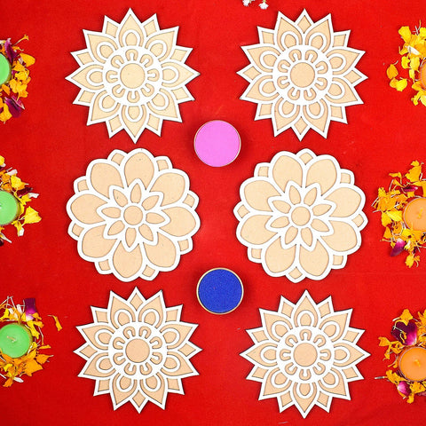Rangoli designs, made with Rangoli colors and stencils, add to the festive spirit and symbolize the welcoming of guests and the triumph of light over darkness. Rangoli colors come in various forms, making them easy to work with and allowing for creativity to flow freely. Stencils simplify the rangoli-making process, ensuring that even beginners can achieve stunning results. They allow for the creation of complex and precise patterns, from traditional motifs to contemporary designs.