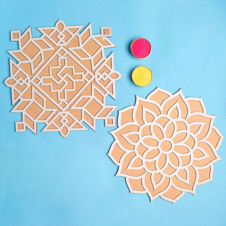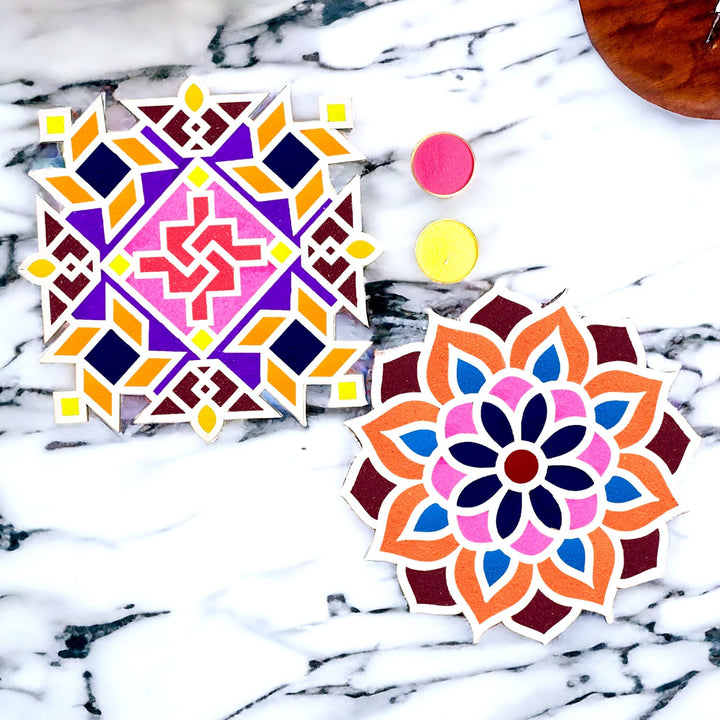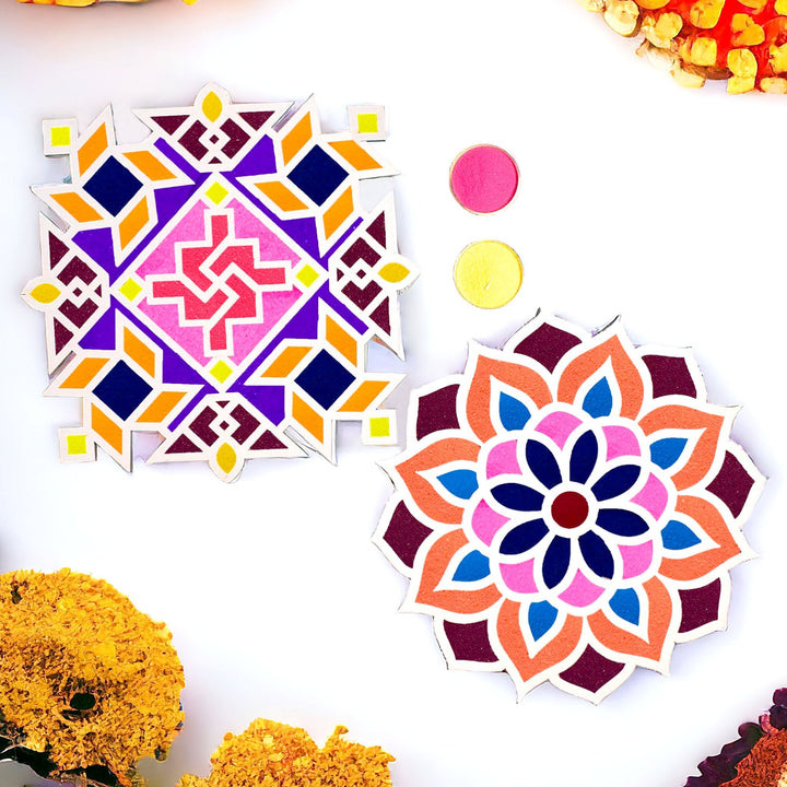 Set of 2 Rangoli Stencils with a Splash of Colors (Assorted)