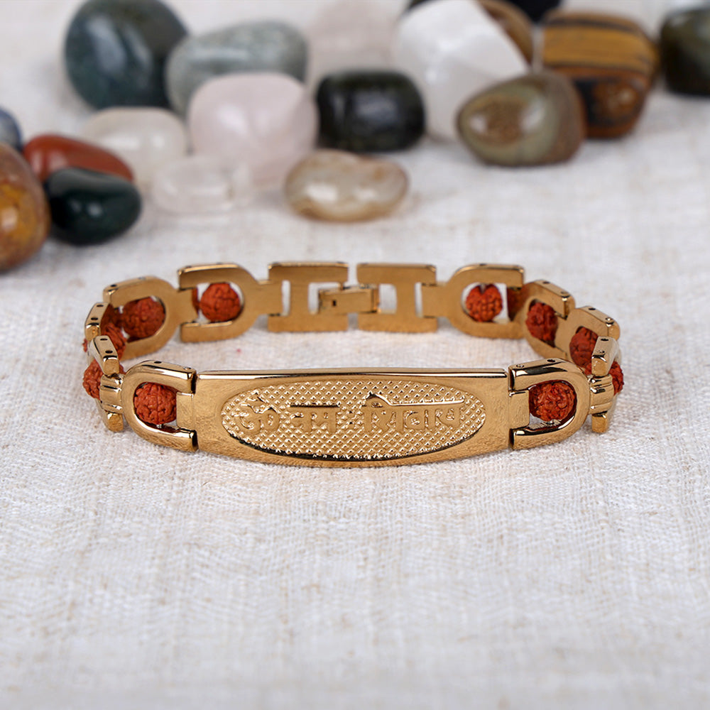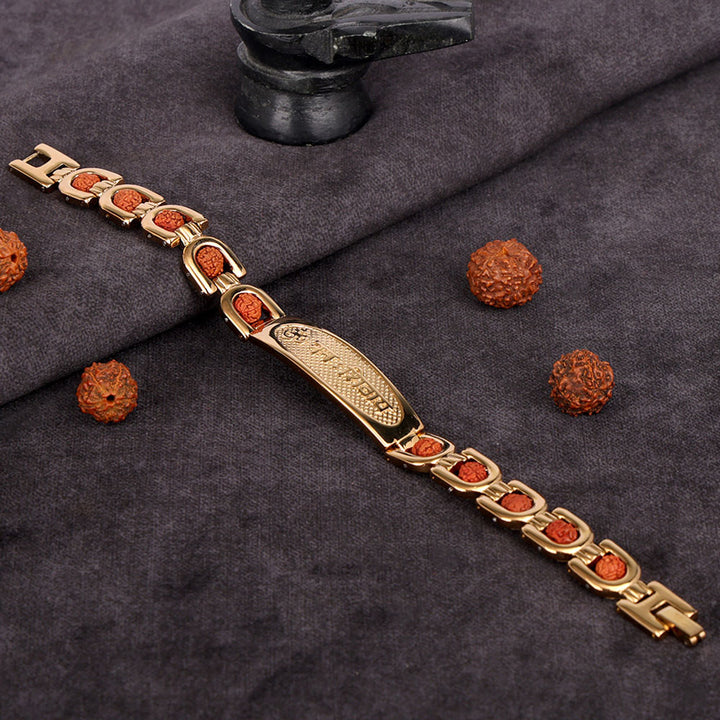Om Namah Shivay Gold Plated Rudraksha Bracelet – Premium IGP Coating
