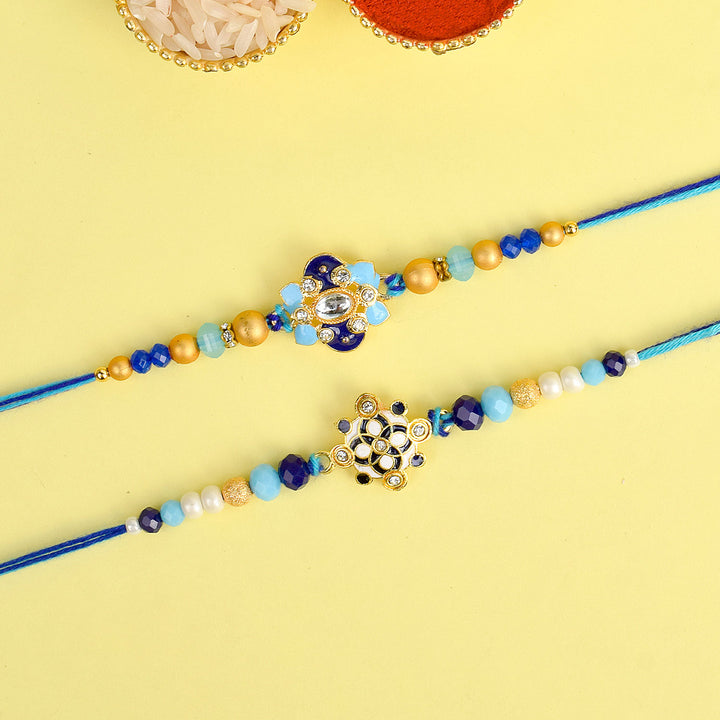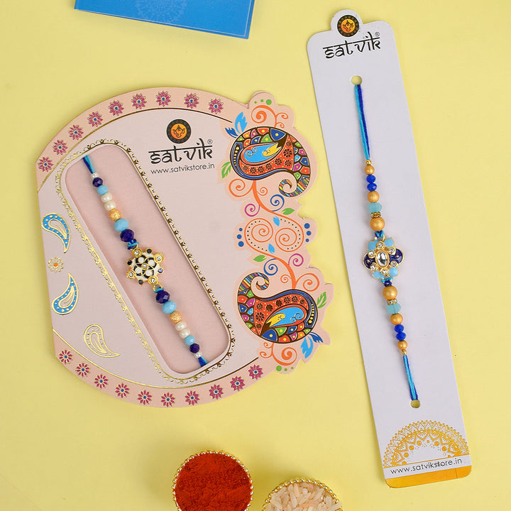 About Product: Strengthen the sacred bond of sibling love with this Set of Two Rakhis, beautifully designed for your beloved brothers. Each rakhi features traditional threadwork and intricate detailing, making them a perfect blend of spirituality and festivity.