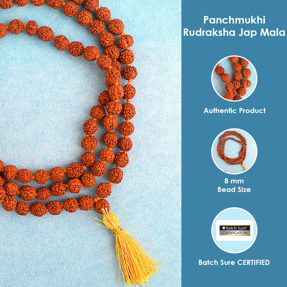 • Package Contains: 1 Pc of  Panchmukhi Rudraksha Jaap Mala.