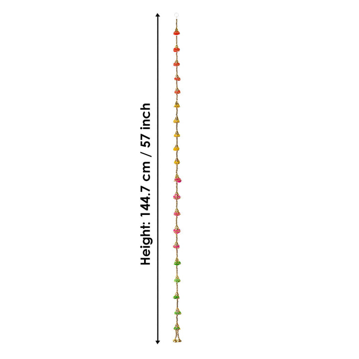 Made from soft fabric pom poms and metal bells, this wall hanging creates a joyful ambiance with its vibrant colors and gentle sounds. Easy to hang and versatile, it’s ideal for decorating during Diwali, Navratri, weddings, birthdays, and housewarming parties or to simply add a fun, decorative touch to any room.
