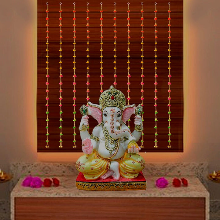 Add a playful and festive charm to your home décor with this Pom Pom Wall Hanging Backdrop featuring decorative bells. Crafted with colorful pom poms and jingling bells, this latkan is perfect for brightening walls, doorways, or windows during festivals, celebrations, and special occasions.