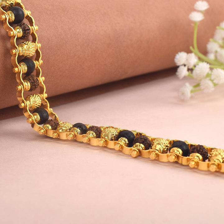 This bracelet is not just an ornament but a sacred talisman. The synergy of Rudraksha’s divine vibrations with Karungali’s protective aura makes it highly beneficial for those seeking inner peace, spiritual strength, and holistic well-being. Its elegant gold-plated finish makes it suitable for both spiritual use and everyday fashion.