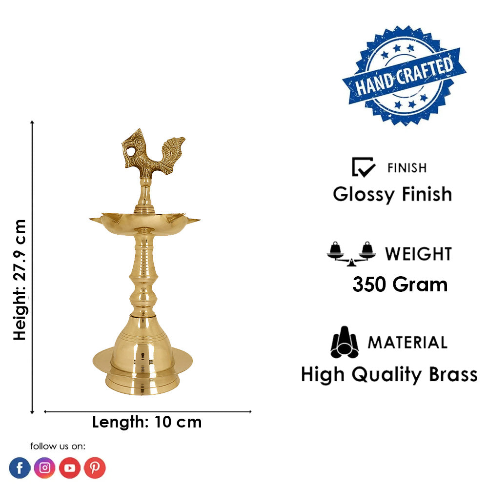 • Item Name: 11 Inch (27.94 cm)  Brass Peacock Kerala Diya Single Step