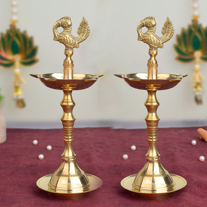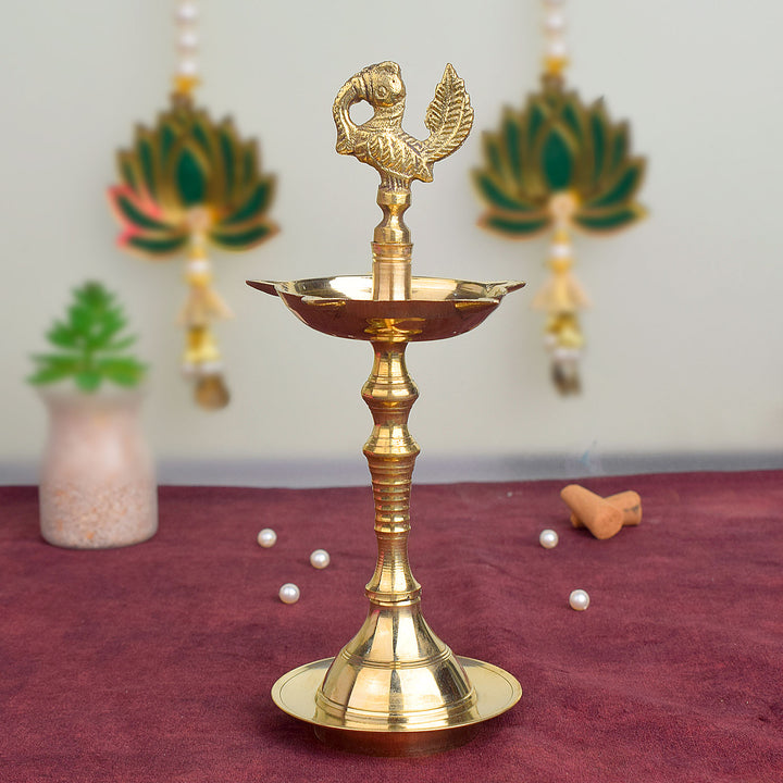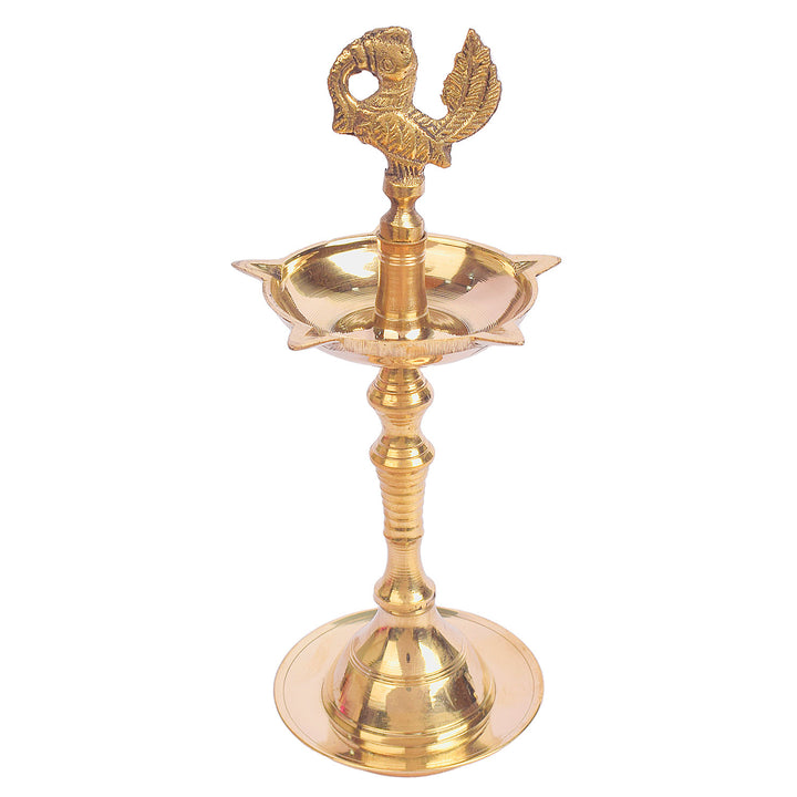 Buy 11 Inch Brass Peacock Kerala Diya Single Step | Satvikworld.com