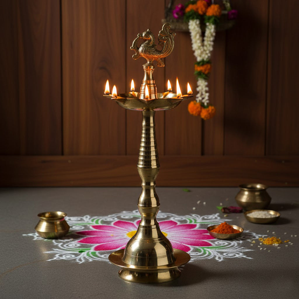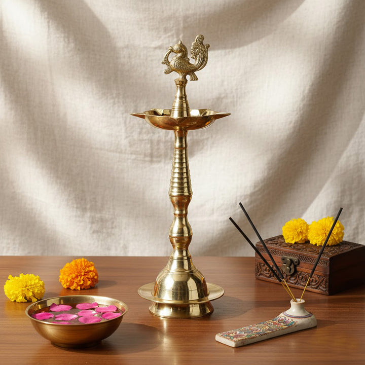 Buy 13 Inch Pure Brass Peacock Kerala Diya | Satvikworld.com