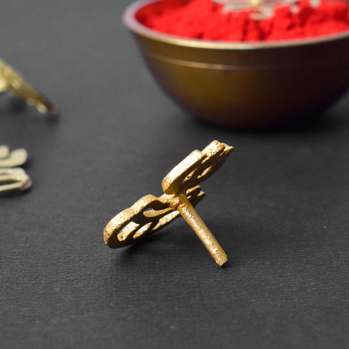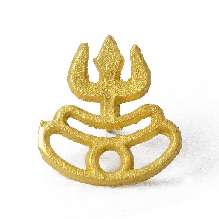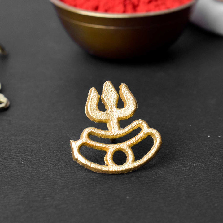Trishul ornament | Tripund Tilak | Deity ornament | Trishul | Pooja rituals | Hindu worship | Sacred trident | Spiritual ornament | Tripund design | Pooja item | Hindu temple decoration | Tilak stamp ornament | Religious artifacts |
