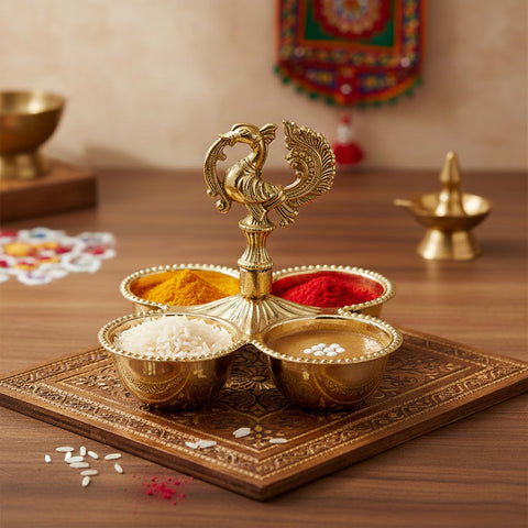 Decorate Your Sacred Space: Elevate the aesthetics of your puja room with our captivating home decor items. From beautifully crafted urli to ornate brass accessories, our collection adds an element of elegance and spirituality to your surroundings. Create a serene and divine atmosphere that inspires tranquility and deepens your connection with the divine.