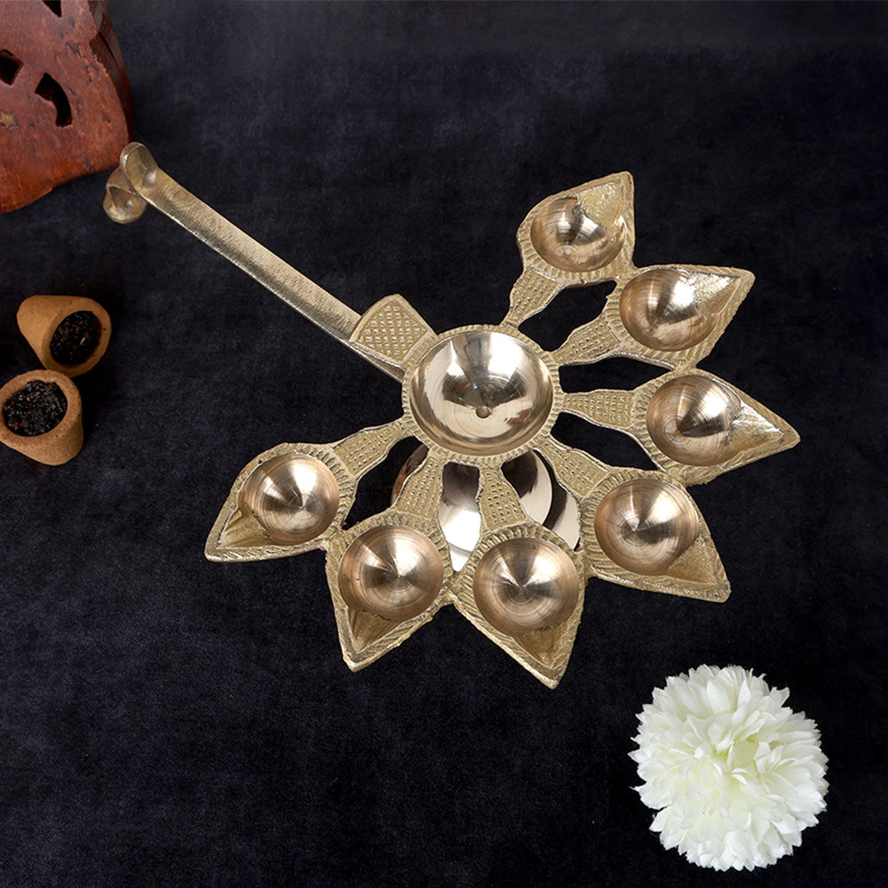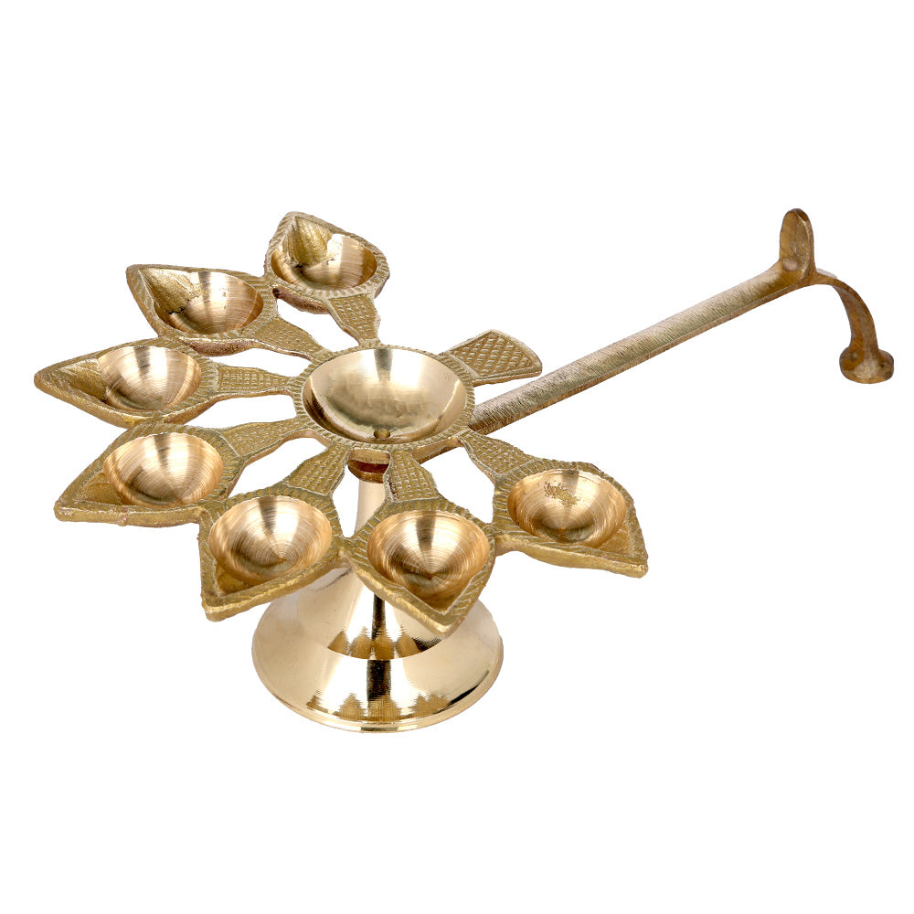 Buy Online | Brass 7 Mukhi Aarti Diya with Handle | Satvikworld.com