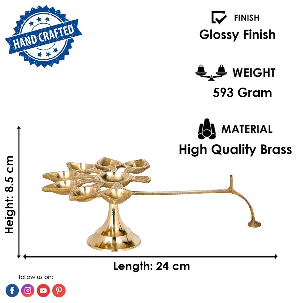• Item Name: Brass 7 Mukhi Aarti Diya with Handle