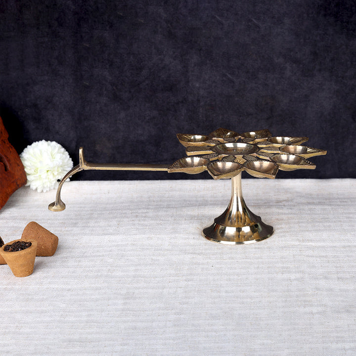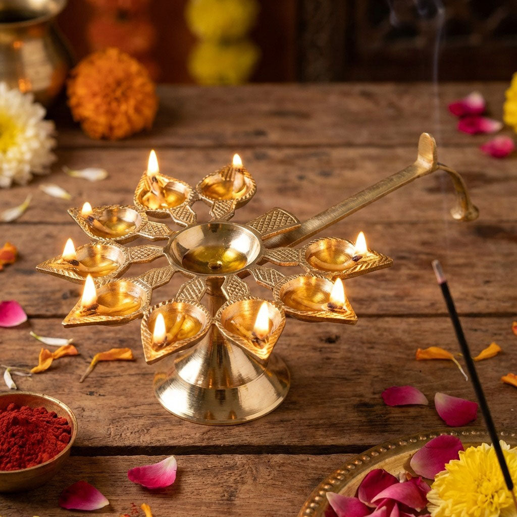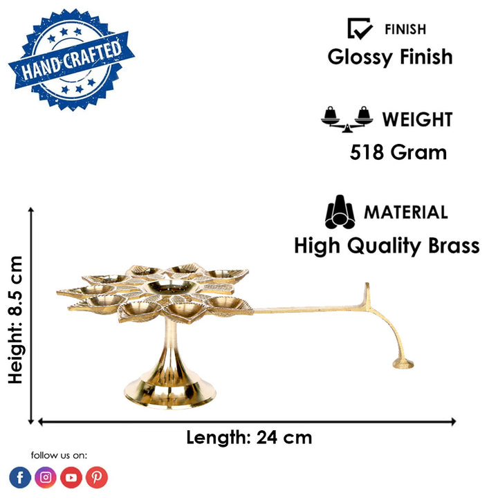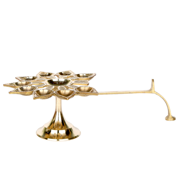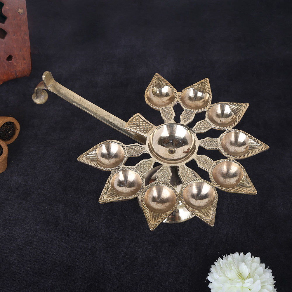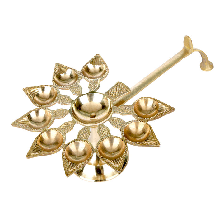 Buy Online | Brass 9 Mukhi Aarti Diya with Handle | Satvikworld.com