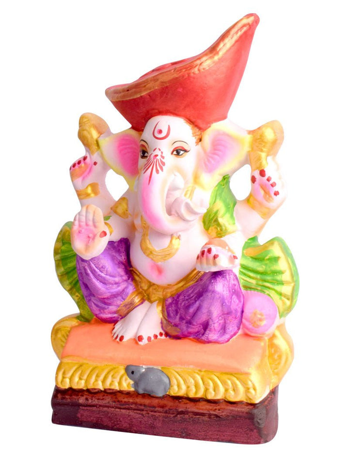 Eco Friendly Ganesha statues are made of 100% biodegradable and eco-friendly material by using Shadu Mati Clay Mitti, which dissolves easily in water. The colours used are also natural, and they decompose and dissolve in water easily. Although they have been made all across India, West Bengal and Maharashtra often employ skilled artisans to make them.