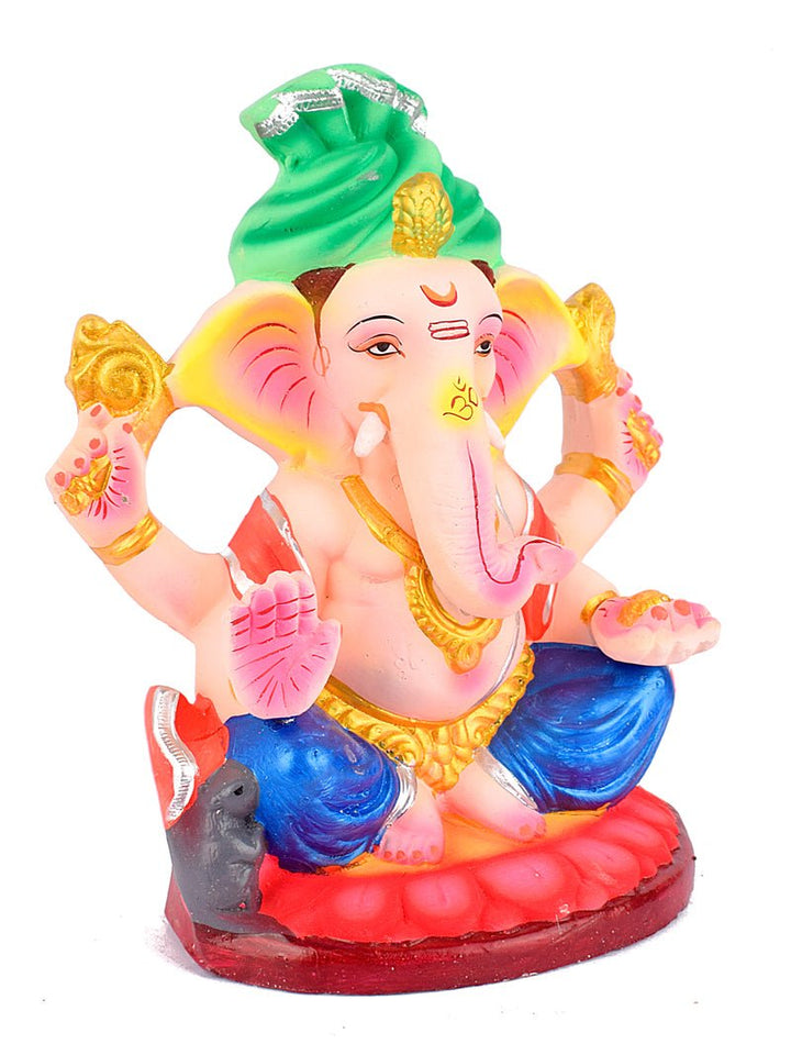 Eco Friendly Ganesha statues are made of 100% biodegradable and eco-friendly material by using Shadu Mati Clay Mitti, which dissolves easily in water. The colours used are also natural, and they decompose and dissolve in water easily. Although they have been made all across India, West Bengal and Maharashtra often employ skilled artisans to make them.