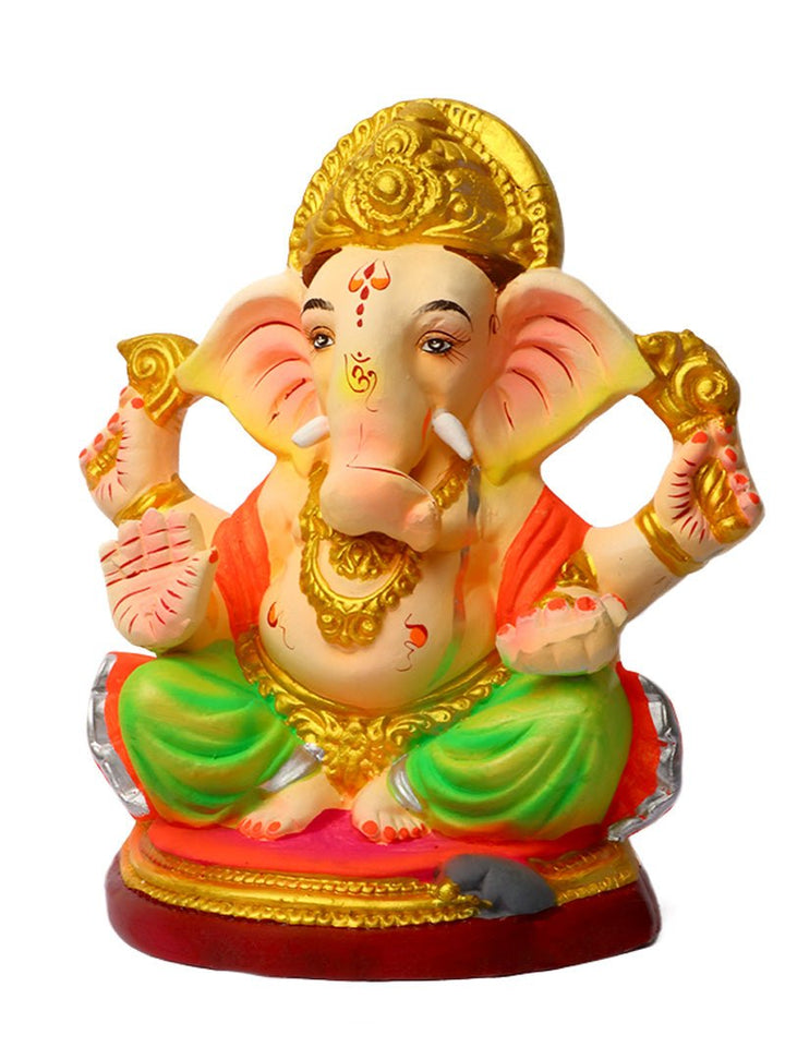 Eco Friendly Ganesha statues are made of 100% biodegradable and eco-friendly material by using Shadu Mati Clay Mitti, which dissolves easily in water. The colours used are also natural, and they decompose and dissolve in water easily. Although they have been made all across India, West Bengal and Maharashtra often employ skilled artisans to make them.
