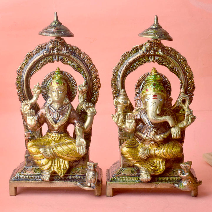8.7 Inch Timeless Brass Lakshmi Ganesha Idol