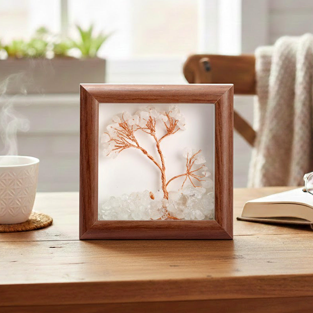 Clear Quartz Tree Frame | Clear Quartz Crystal Tree with Frame | Master Healer Stone Decor | Energy Amplification Decor | Spiritual Home Decor | Healing Crystal Frame