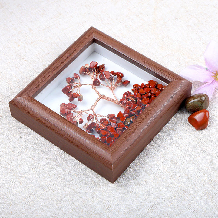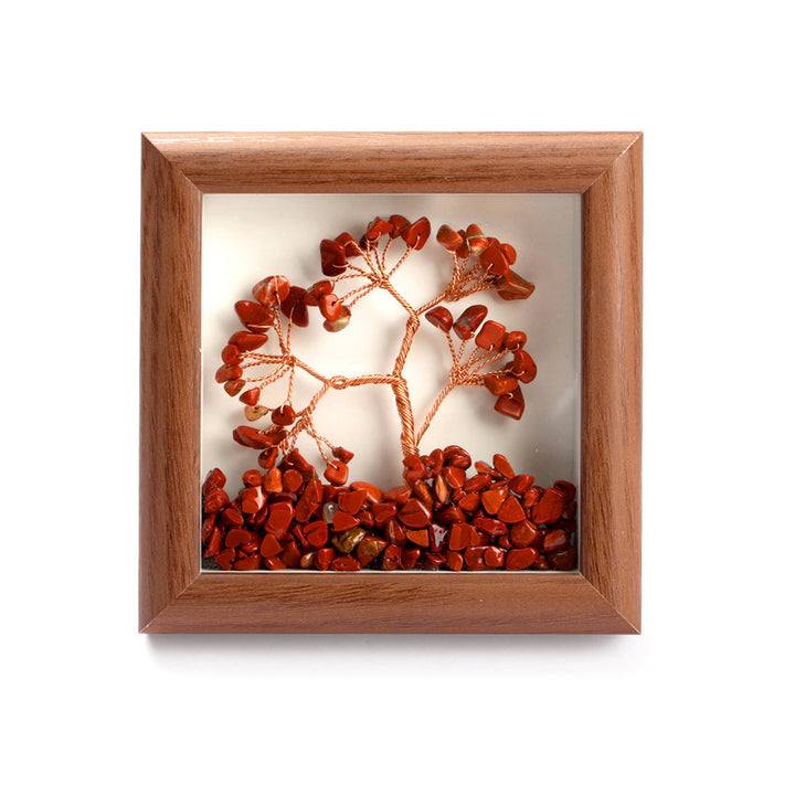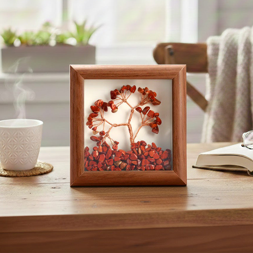 About the Product: The Red Jasper Tree with Frame is a grounding healing stone décor piece designed to bring strength, stability, and protective energy into your space. Crafted with natural Red Jasper crystal chips arranged in a tree formation, this framed artwork symbolizes endurance, courage, and rooted energy.