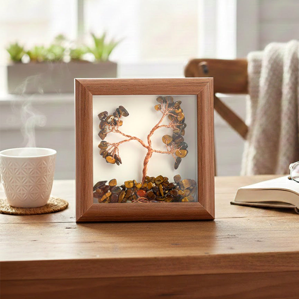 Tiger Eye Tree Frame | Tiger Eye Crystal Tree with Frame | Confidence Healing Stone Decor | Protection Energy Frame | Spiritual Home Decor | Focus and Strength Decor