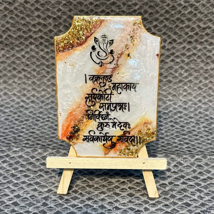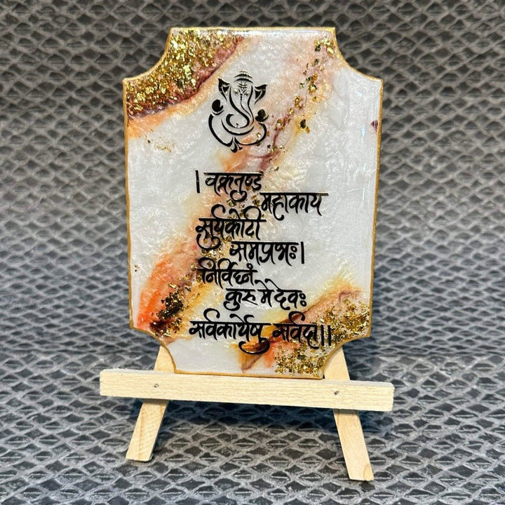 Buy Ganesh Mantra Frame With Stand - Epoxy (White) | Satvikworld.com