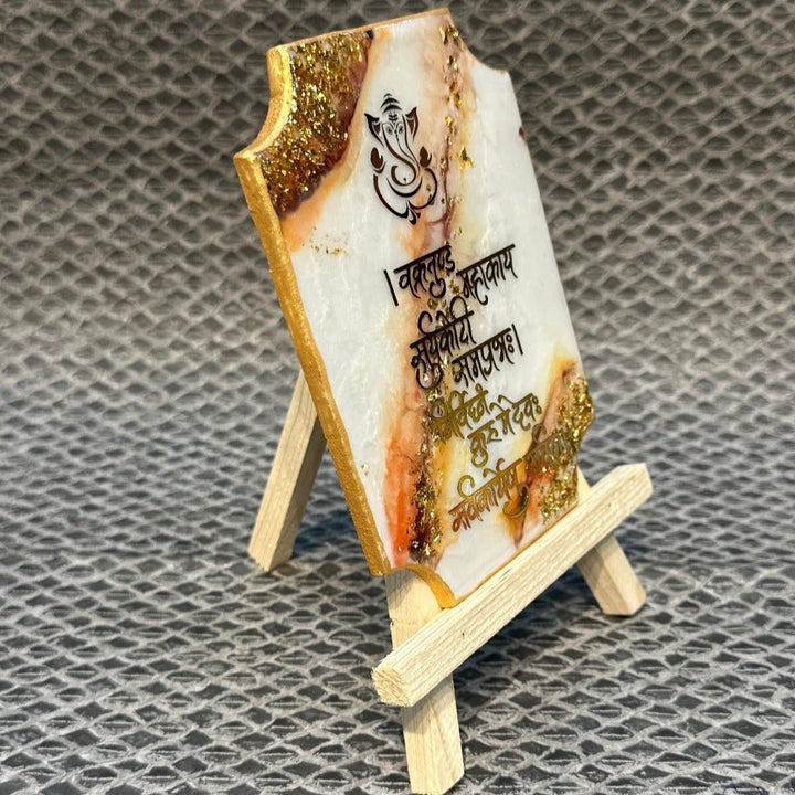 Decorative Ganesha Mantra Frame With Stand Made With Epoxy (White)