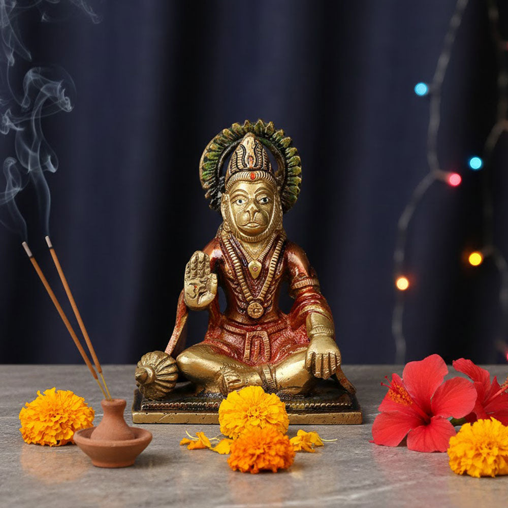 About Product: The Brass Hanuman Idol represents Lord Hanuman, the epitome of strength, courage, and devotion. Crafted from high-quality pure brass, this idol is ideal for home altars, meditation corners, or offices where protection and positive energy are desired.