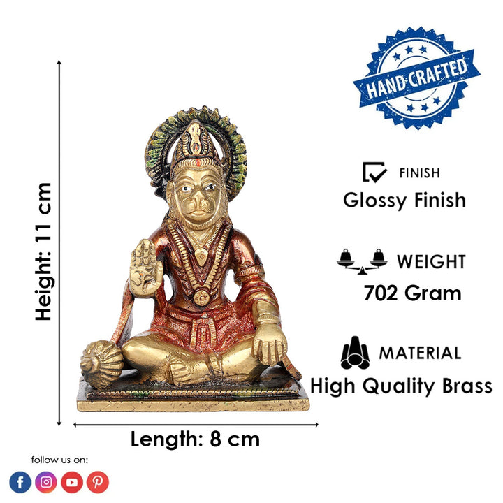 • Item Name: 4.3 Pure Brass Hanuman Idol for Home & Pooja