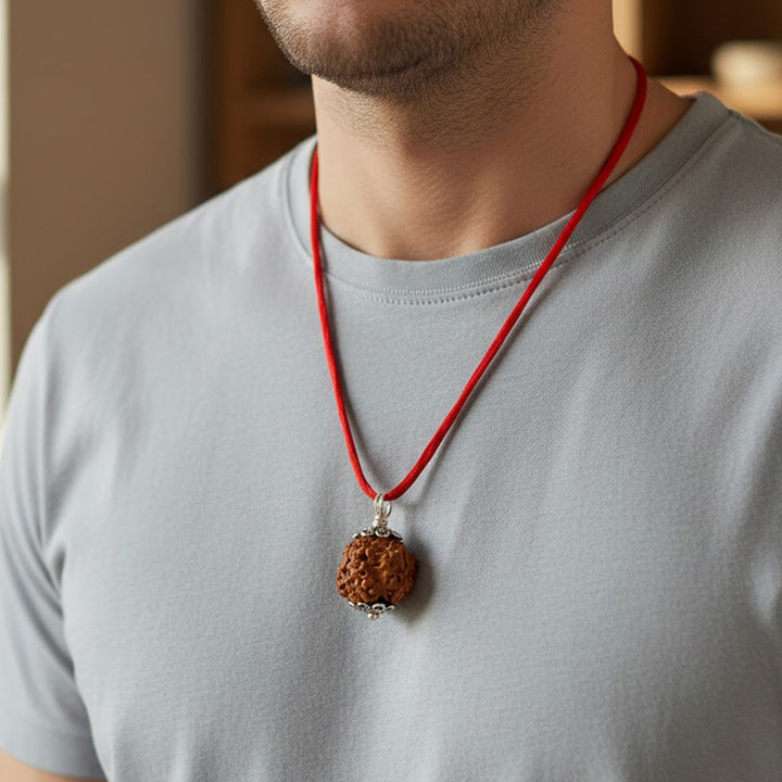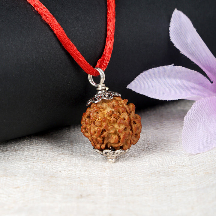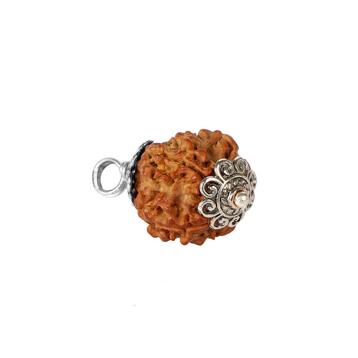 Buy 5 Mukhi Rudraksha Pendant with Designed Silver Cap | Satvikworld.com