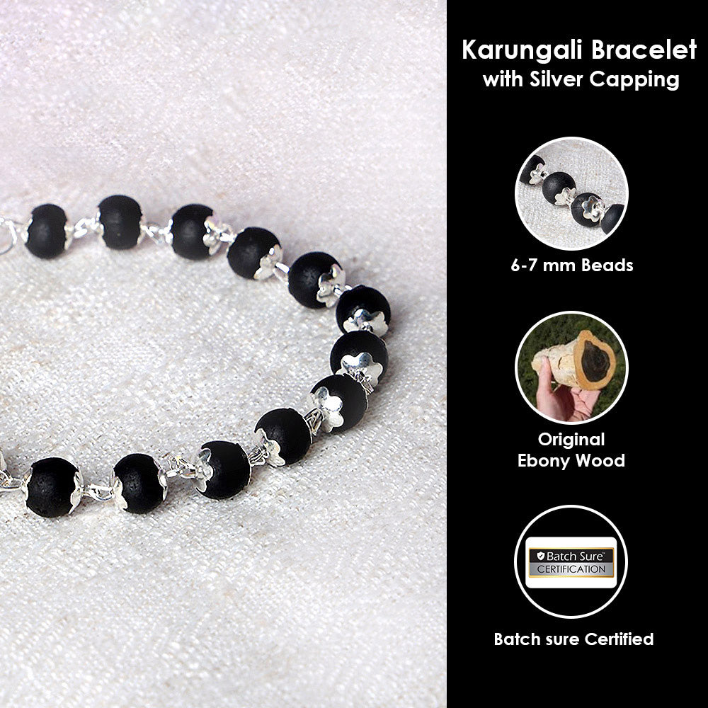 • Package Contains: 1 Pc Certified Karungali Silver Capping Mala + Bracelet Combo