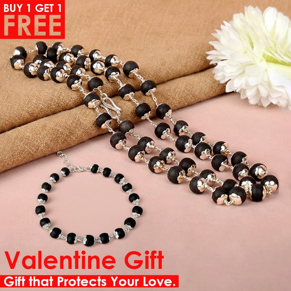 Valentine Gift for Couples Certified Combo of Karungali Mala & Bracelet with Silver Capping