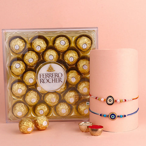 Make your Rakhi celebrations even more memorable, delightful, and personalized with our thoughtfully curated Rakhi gift hampers. Our collection includes a wide range of options, such as Rakhi with delectable sweets that tantalize the taste buds and evoke happiness, Rakhi with wholesome dry fruits that symbolize good health and abundance, Rakhi with indulgent chocolates that bring sweetness and joy, and Rakhi with personalized messages or names that add a heartfelt touch. These thoughtful gestures convey your affection, care, and thoughtfulness, making your Rakhi festivities truly special and unforgettable.