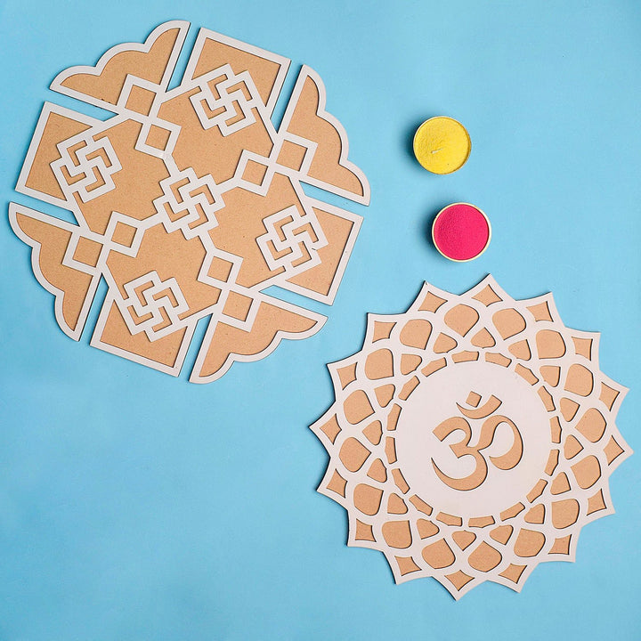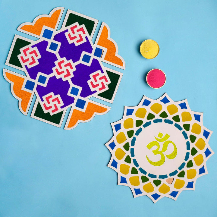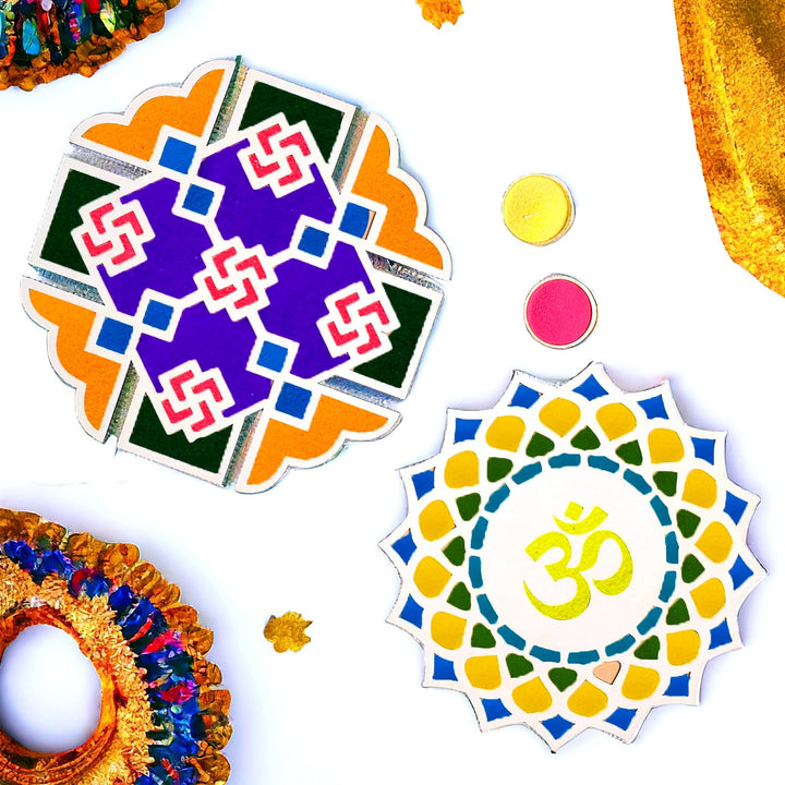 • Package Contain: Set of 2 Different Design Portable Rangoli Stencils with 5 rangoli pouches.