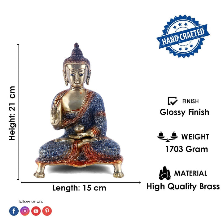 • About the Product:  Contemplative Brass Colorful Buddha Idol Blue