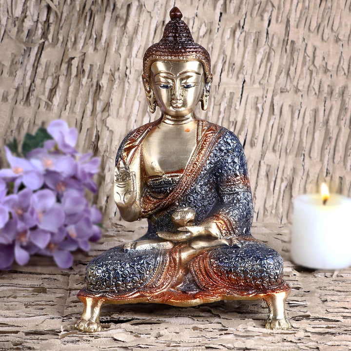 Contemplative Brass Colorful Buddha Idol Blue | Buy Online | Satvik – Satvikworld.com