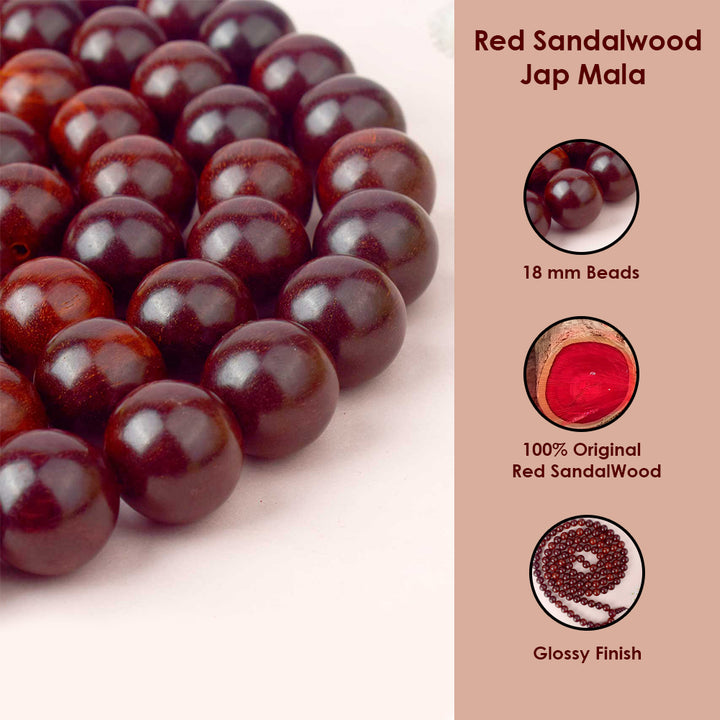 Buy Now 108+1 Beads Red Chandan Mala 18mm for Japa | Satvikworld.com