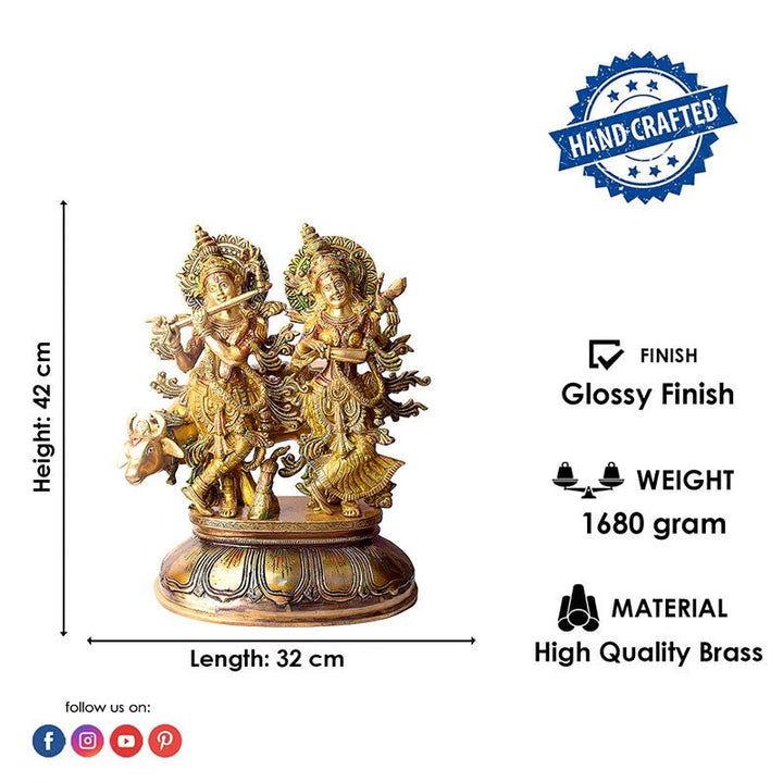 • Product Name: 16 Inches Charming Radha Krishna with Kamdhenu Colorful Brass Idol