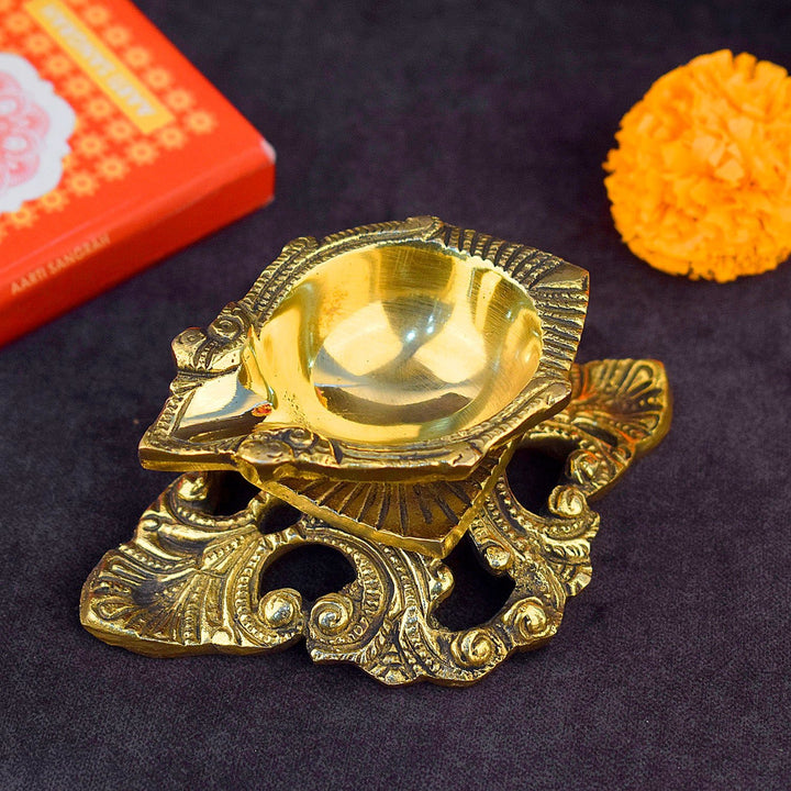 Buy Designer Brass Diya Online | 100% Pure Brass Diya |Satvikworld.com