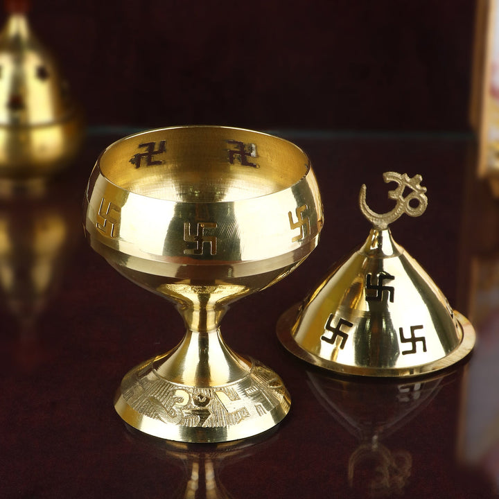 Shop Om & Swastik engraved Brass Diya | Buy Online | Satvikworld.com