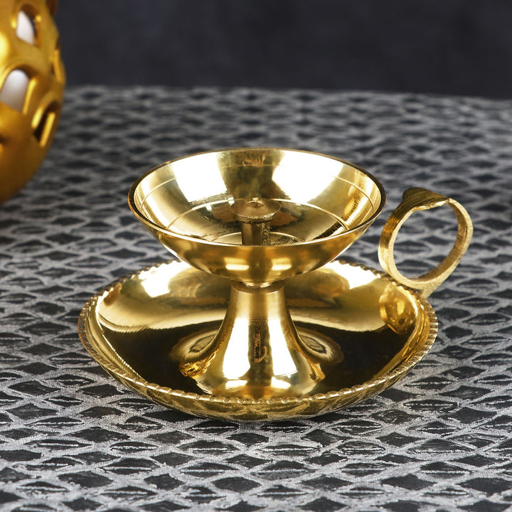 Pure Brass Aarti Akhand Diya With Ring Holder