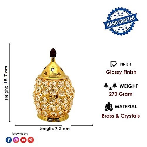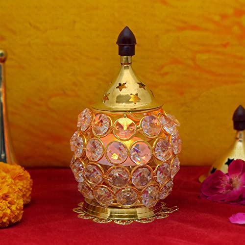 Buy Pure Brass Oval Shape Crystal Glass Chimney Diya | Satvikworld.com