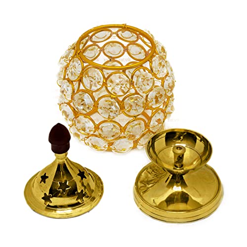 • Item Name: Pure Brass Crystal Glass Diya.