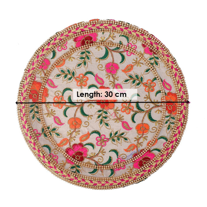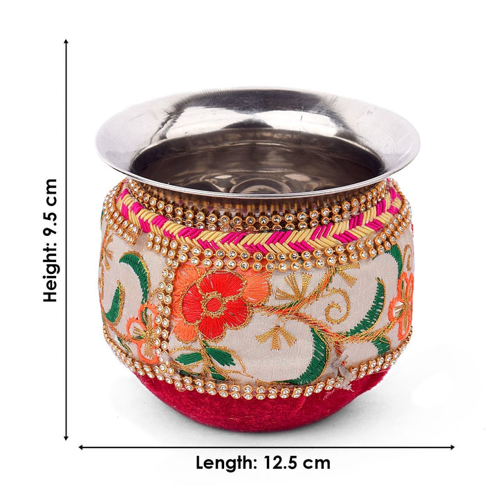 Item Name: 11 Pc Floral Embroidery Karwa Chauth Thali Set with Cover