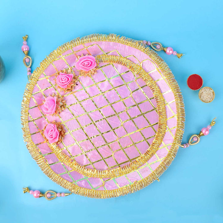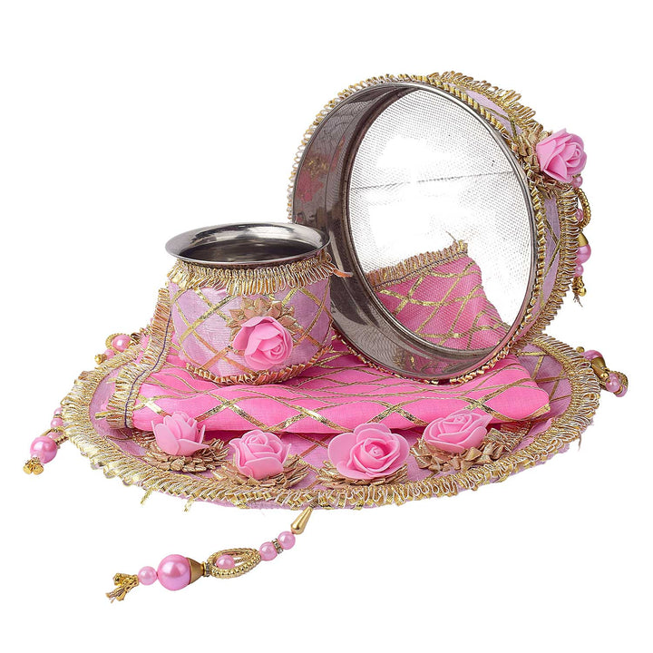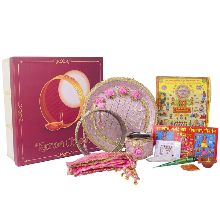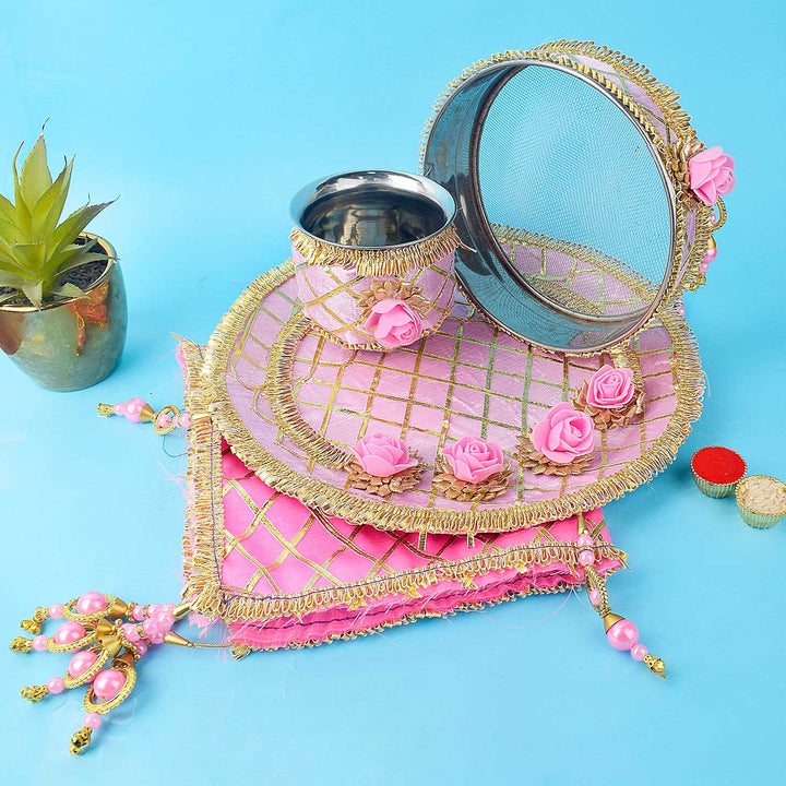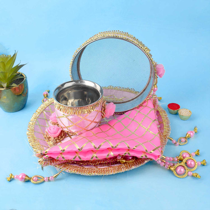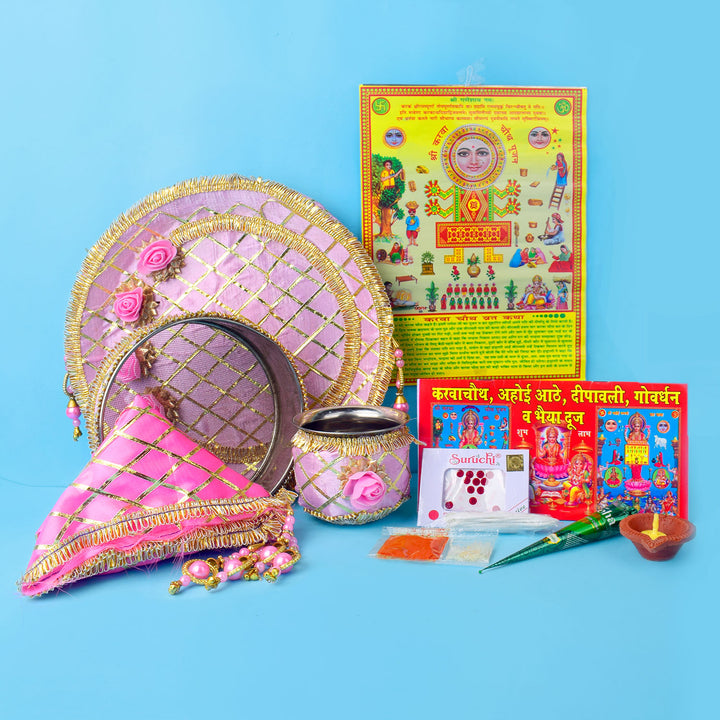 Shop Light Pink Karwa Chauth Thali Set – 11 Pc Kit | Satvikworld.com