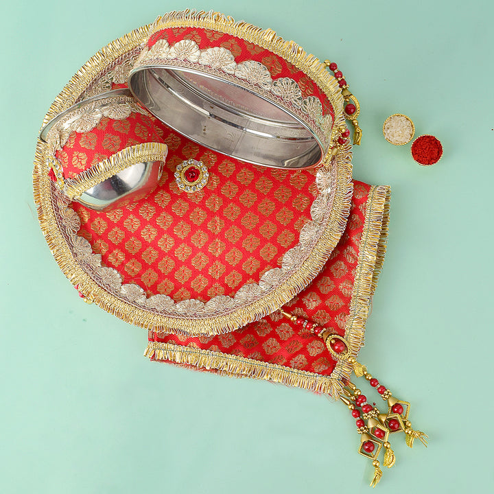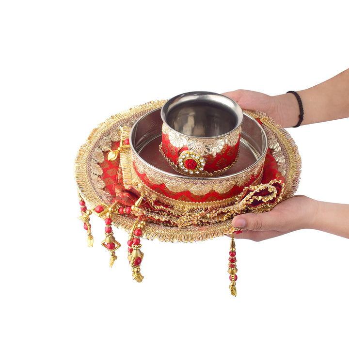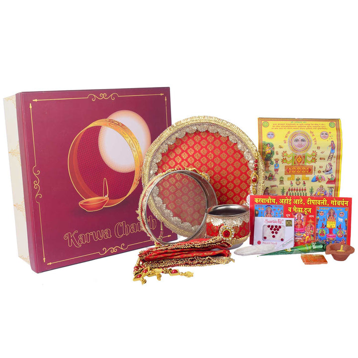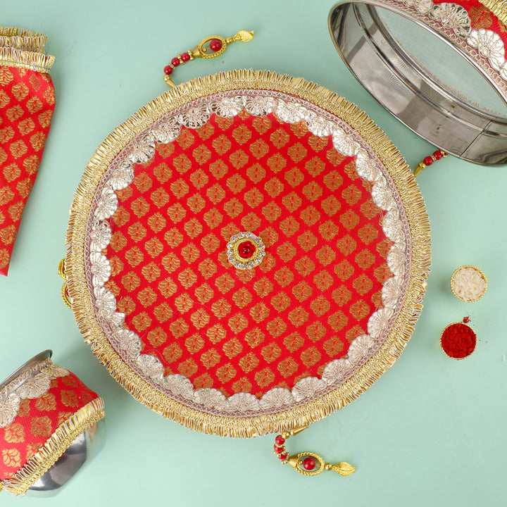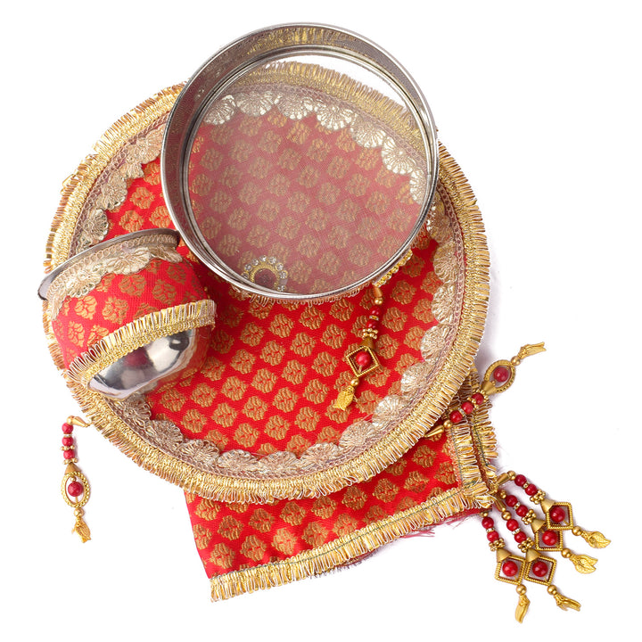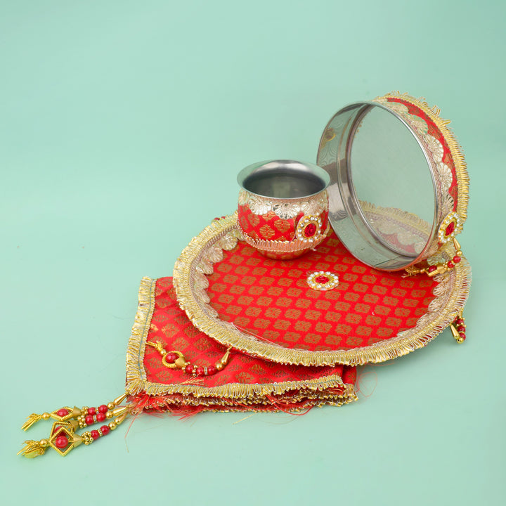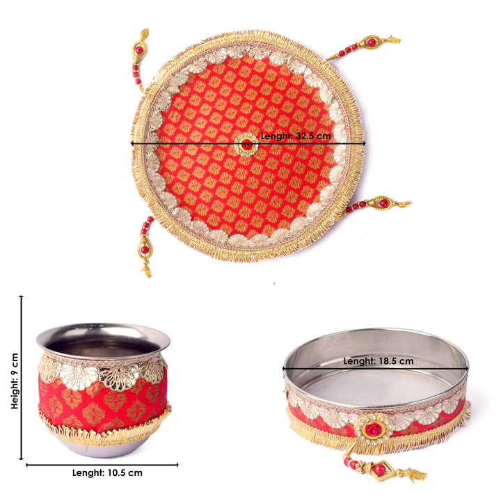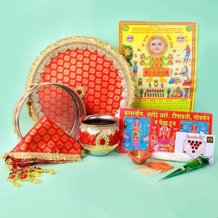 Buy Stunning Red Karwa Chauth Thali Set 11 Pc Online | Satvikworld.com