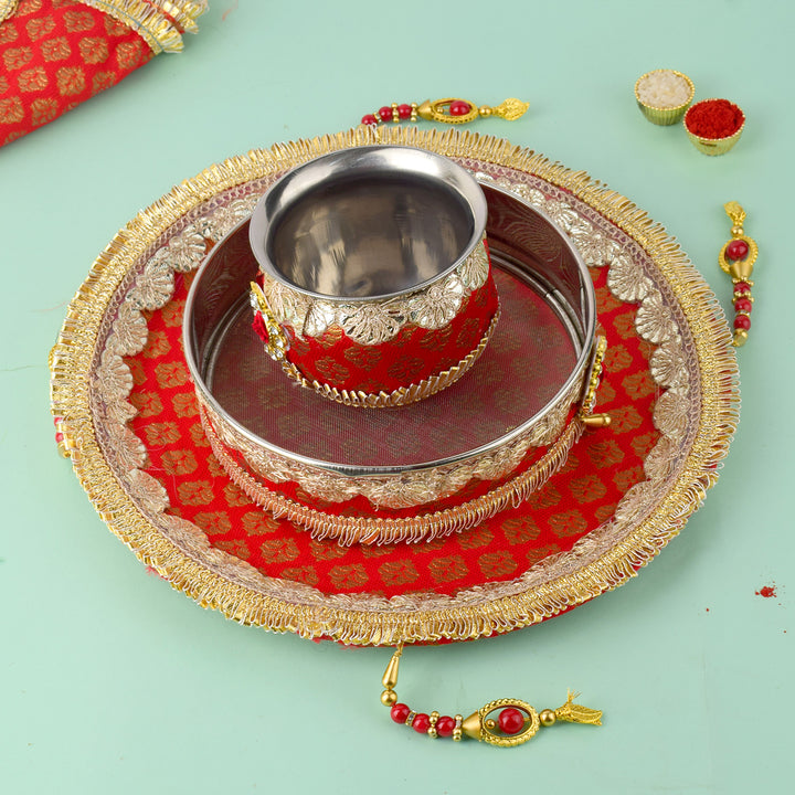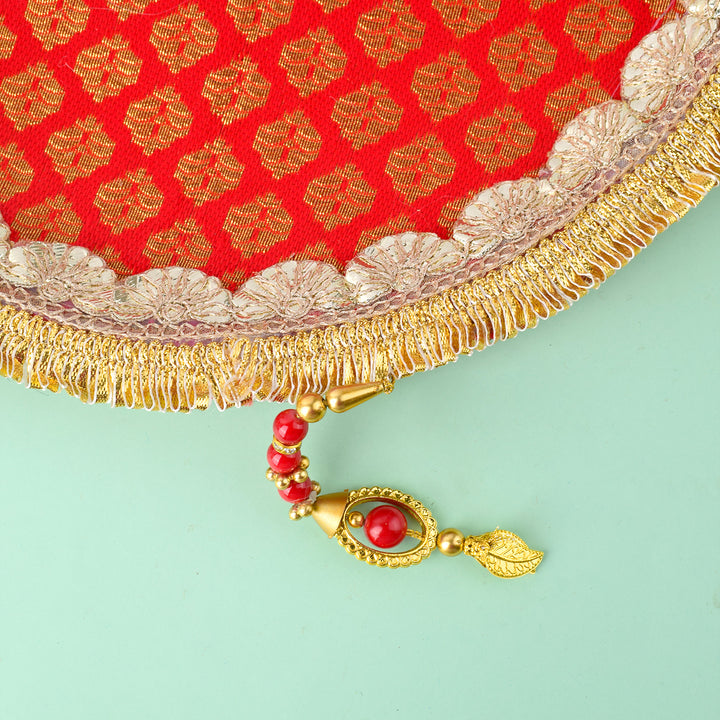 • Gorgeous Red Embroidered Thali: Highlighted with intricate embroidery, this thali adds grace and spiritual ambiance to your ritual setup.