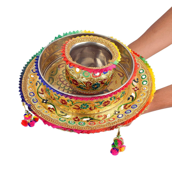 Artistic Peacock Meenakari Karwa Chauth Thali Set | Satvikworld.com