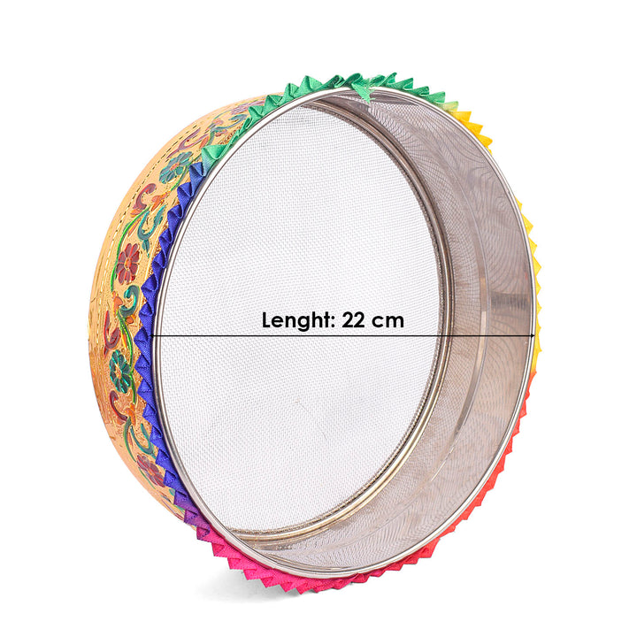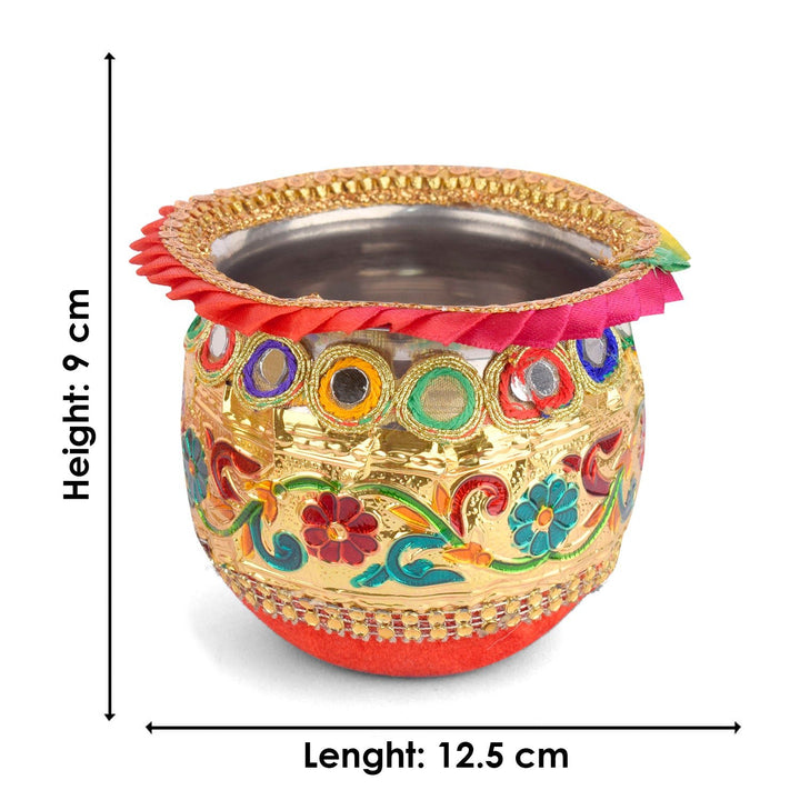 About Product: Karwa chauth beautiful Steel thali set includes a thali, Lota, Sieve for traditional and trendy way of karwa chauth pujan for all the married / engaged ladies and girls. Be attractive by using such a decorative piece of thali of puja for your love/ life. This thali can also be used on Diwali/ Deepawali Pujan. Karwa chauth thali set, karwa chauth thali, karwachauth thali platter, karvachauth thali platter, pooja thali set, steel puja thali set, complete karwachauth set, karwachouth set, designer thali set,hanmade thali set, Indian traditional set, karwachauth thali.