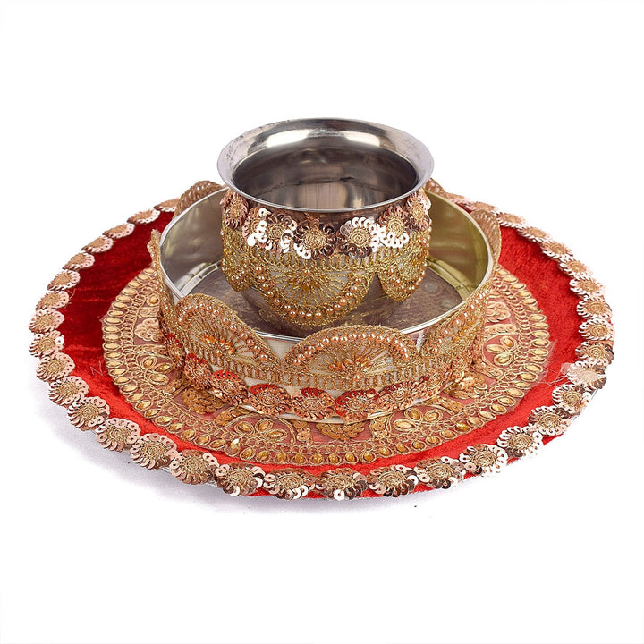 Bright Red Karwa Chauth Thali Set | Buy Now at Satvikworld.com