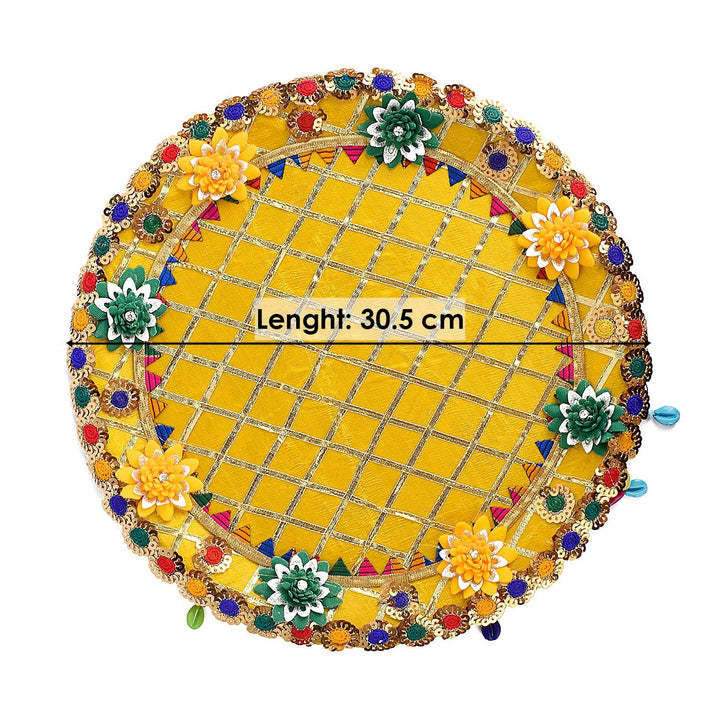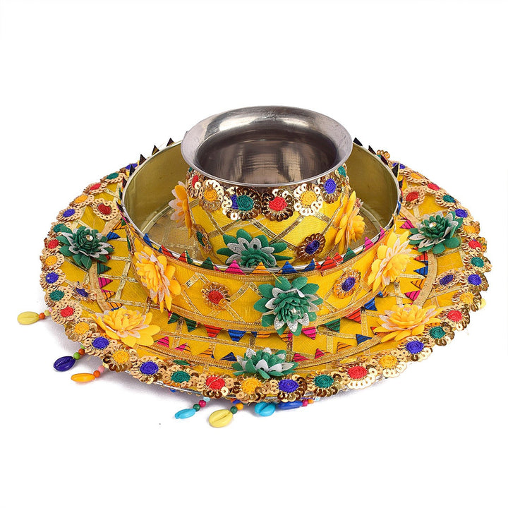 Bright Yellow Karwa Chauth Thali Set|Buy at Satvikworld.com